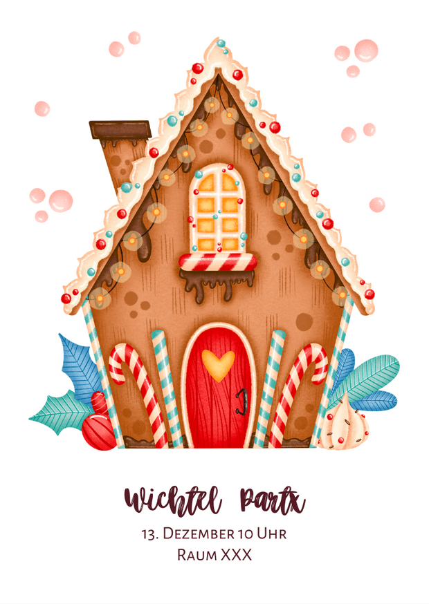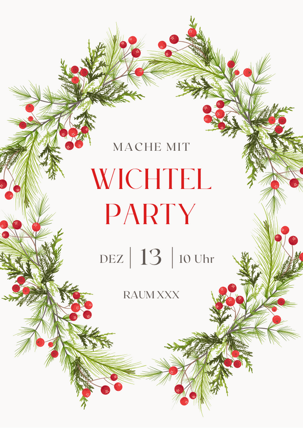 - (Optional) Das gewisse Extra: Wenn du deine Einladungen noch ein bisschen weihnachtlicher gestalten willst, nutze unsere Kartenvorlagen oder füge eines der Gedichte unten in deine Einladung ein.